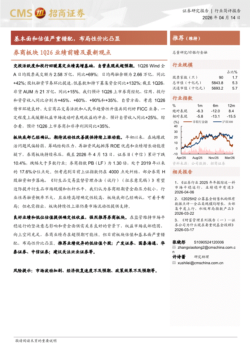 非银行金融行业:招商证券-非银行金融行业券商板块1Q26业绩前瞻及最新观点:基本面和估值严重错配,布局性价比凸显-260414