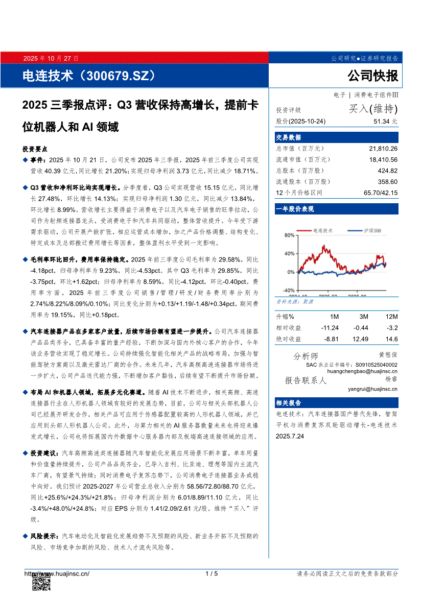 电连技术:华金证券-电连技术-300679-2025三季报点评:Q3营收保持高增长,提前卡位机器人和AI领域-251027