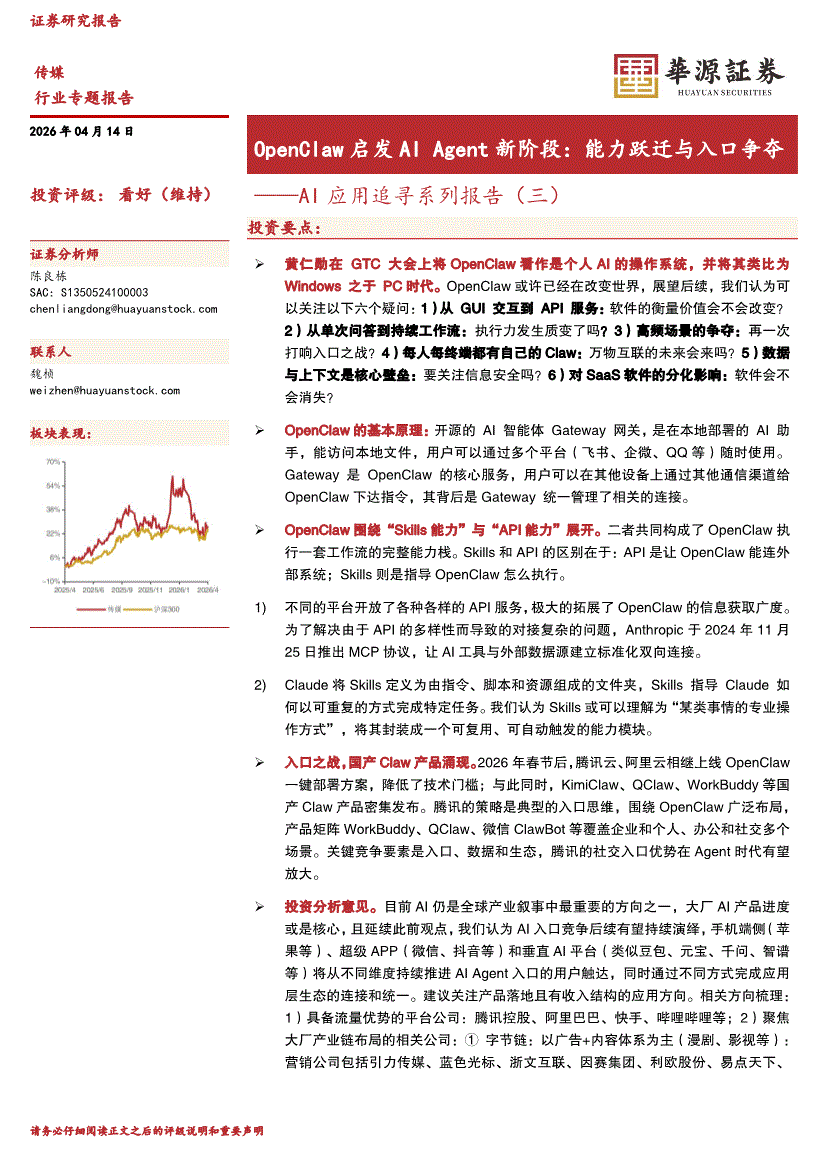传媒行业:华源证券-传媒行业AI应用追寻系列报告(三):OpenClaw启发AIAgent新阶段,能力跃迁与入口争夺-260414