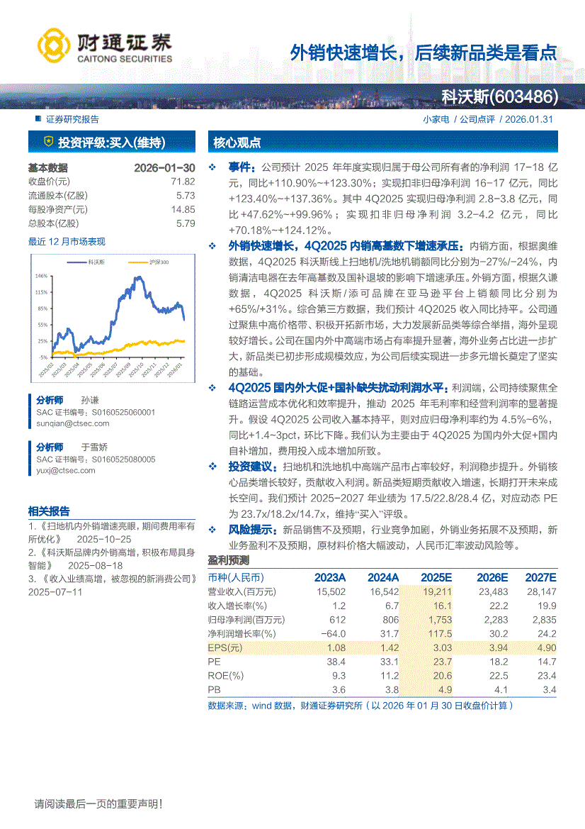 科沃斯:财通证券-科沃斯-603486-外销快速增长,后续新品类是看点-260131