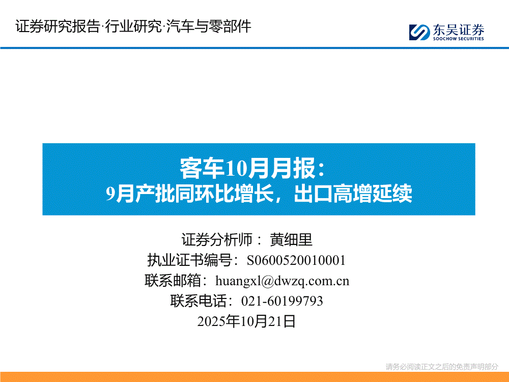 客车行业:东吴证券-客车行业10月月报:9月产批同环比增长,出口高增延续-251021