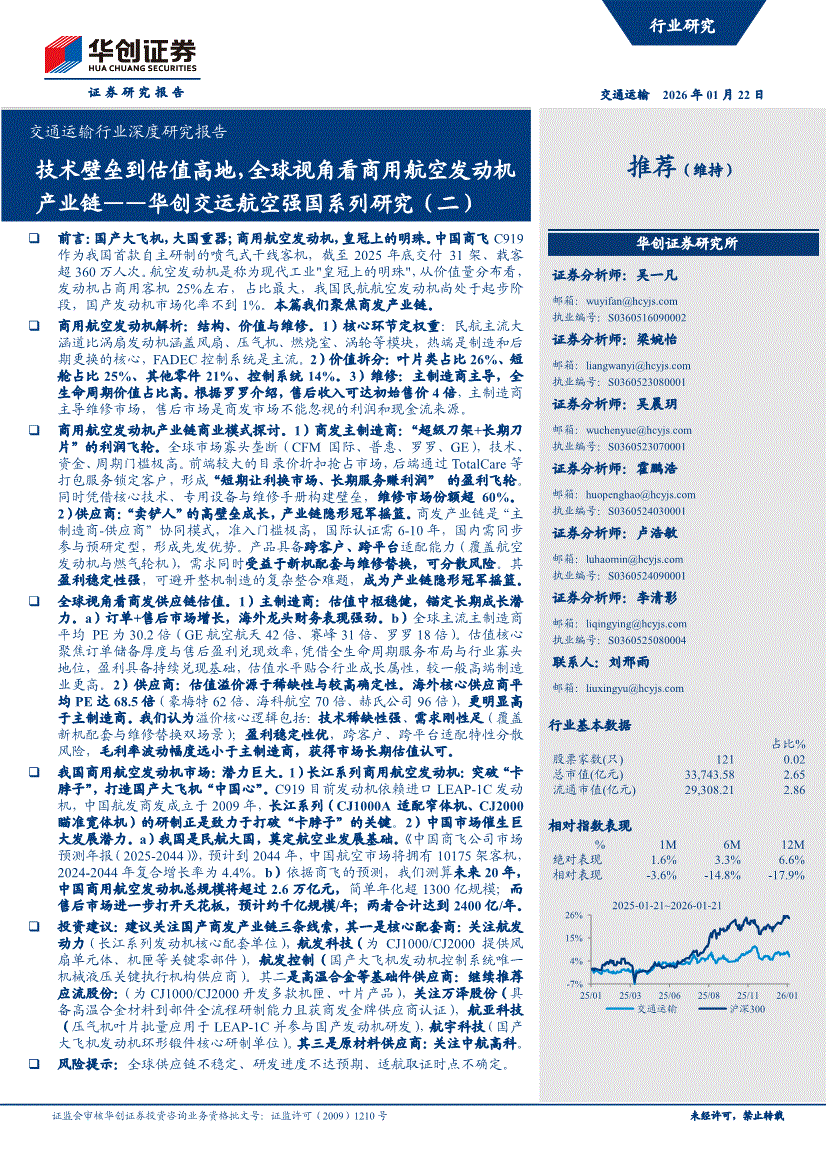 交通运输行业:华创证券-交通运输行业深度研究报告:技术壁垒到估值高地,全球视角看商用航空发动机产业链——华创交运航空强国系列研究(二)-260122