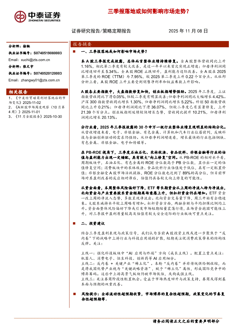 中泰证券-三季报落地或如何影响市场走势?-251108