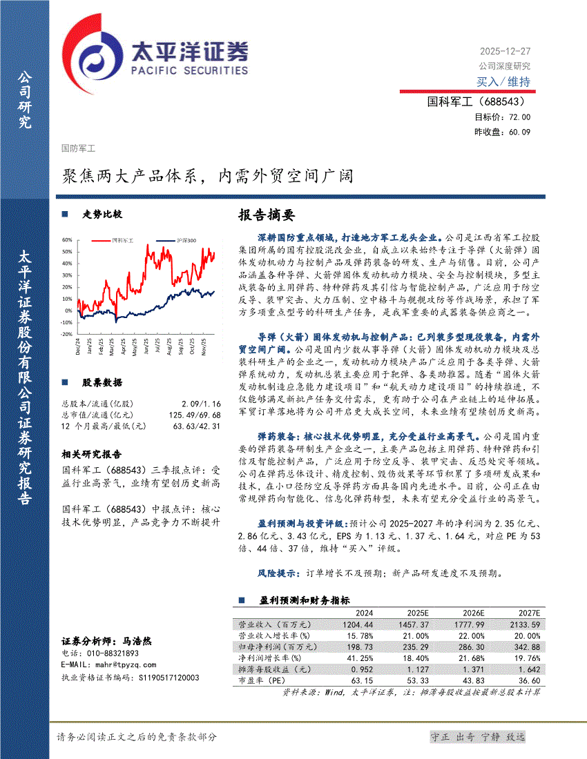 国科军工:太平洋证券-国科军工-688543-聚焦两大产品体系,内需外贸空间广阔-251227