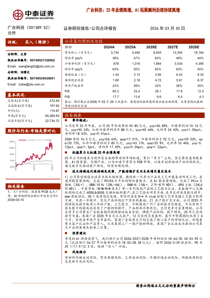 广合科技:中泰证券-广合科技-001389-25年业绩高增,AI拓展顺利后续持续高增-260330
