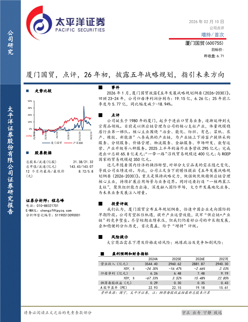 厦门国贸:太平洋证券-厦门国贸-600755-点评,26年初,披露五年战略规划,指引未来方向-260210