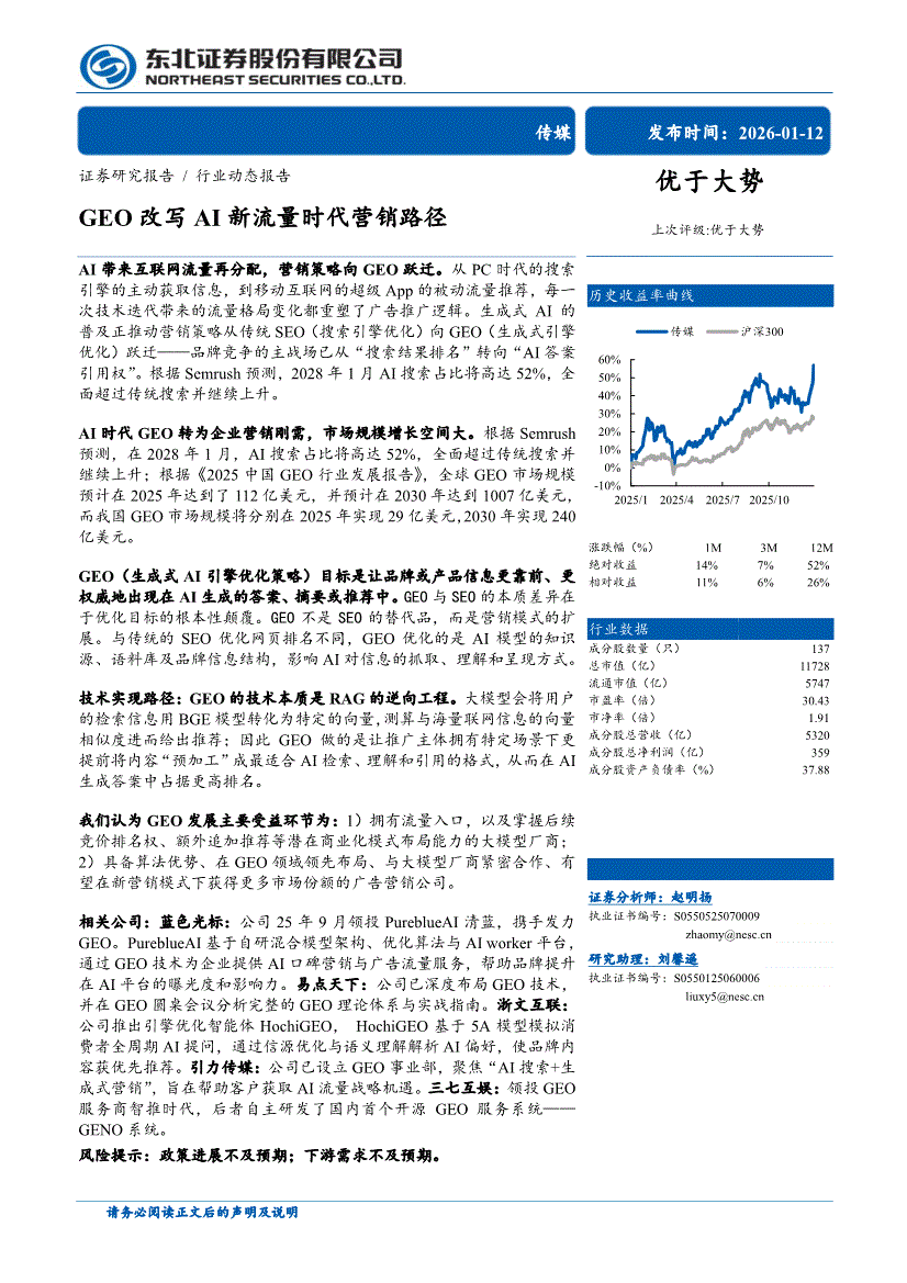 传媒行业:东北证券-传媒行业动态报告:GEO改写AI新流量时代营销路径-260112