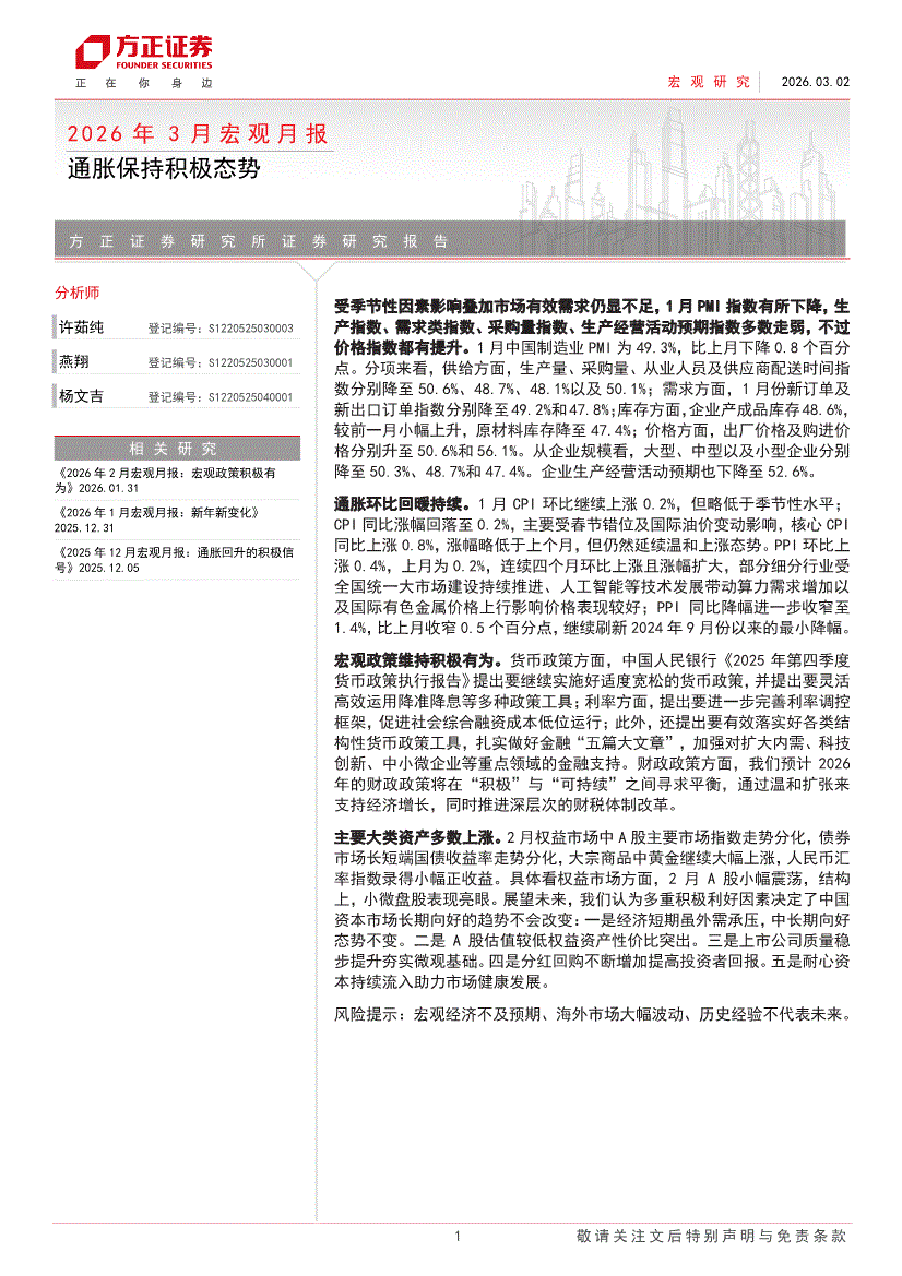 方正证券-2026年3月宏观月报:通胀保持积极态势-260302