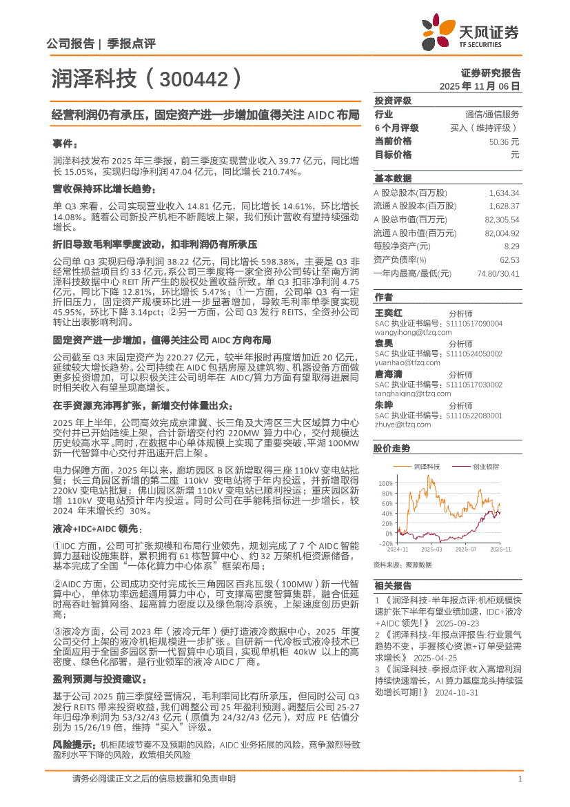 润泽科技:天风证券-润泽科技-300442-经营利润仍有承压,固定资产进一步增加值得关注AIDC布局-251106