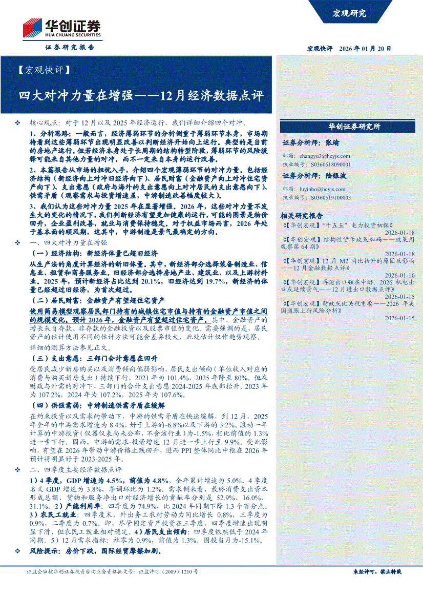 华创证券-【宏观快评】12月经济数据点评:四大对冲力量在增强-260120