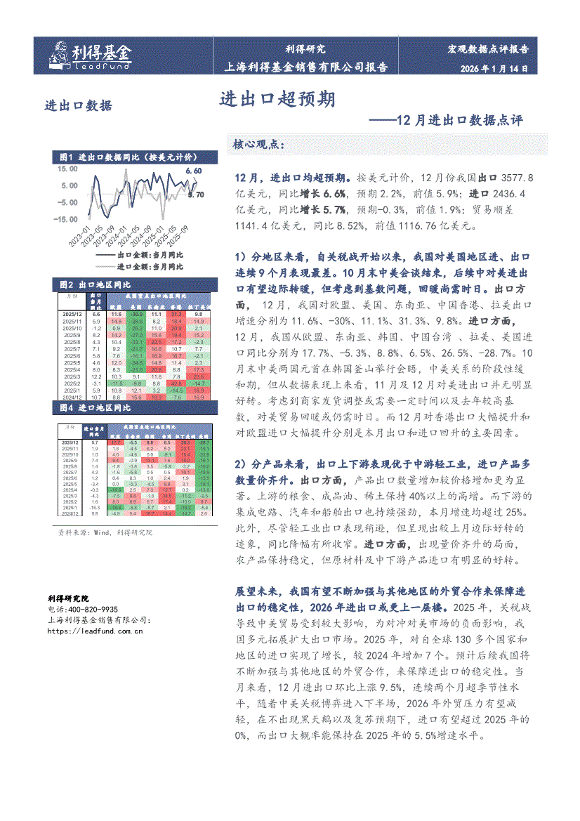 利得基金-12月进出口数据点评:进出口超预期-260114