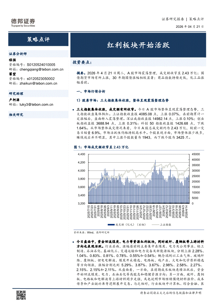 德邦证券-策略点评:红利板块开始活跃-260421