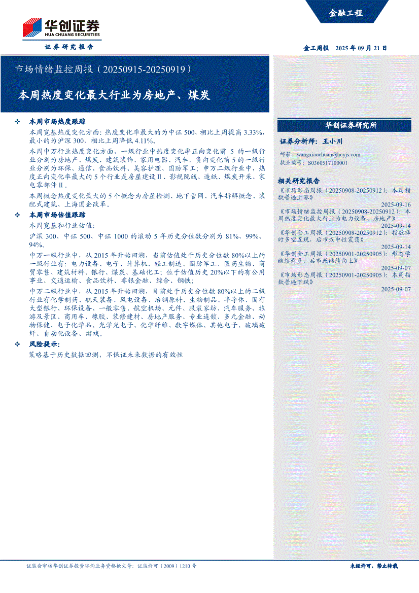 华创证券-市场情绪监控周报:本周热度变化最大行业为房地产、煤炭-250921