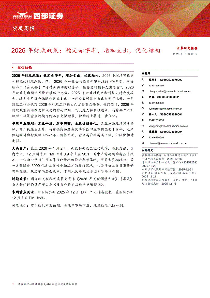 西部证券-2026年财政政策:稳定赤字率,增加支出,优化结构-260103