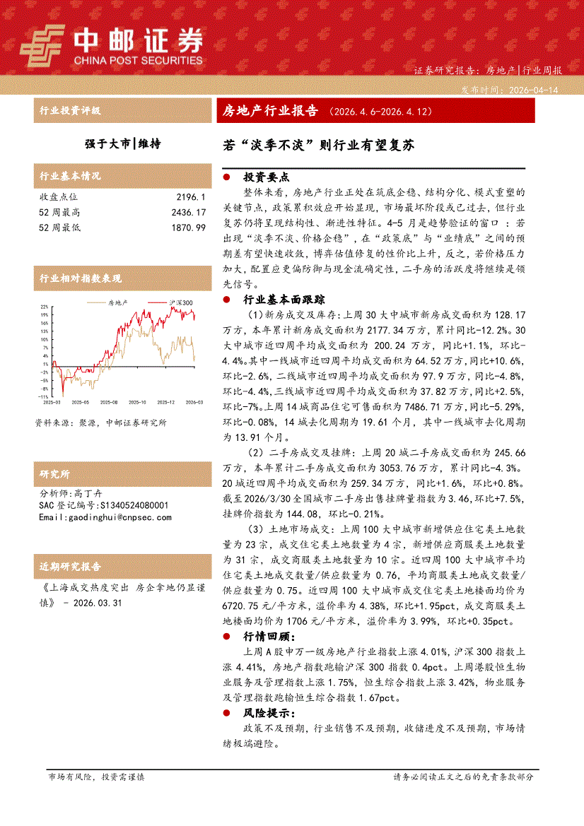 房地产行业:中邮证券-房地产行业报告:若“淡季不淡”则行业有望复苏-260414