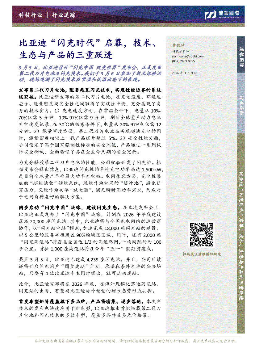 科技行业:浦银国际-科技行业:比亚迪“闪充时代”启幕,技术、生态与产品的三重跃进-260309