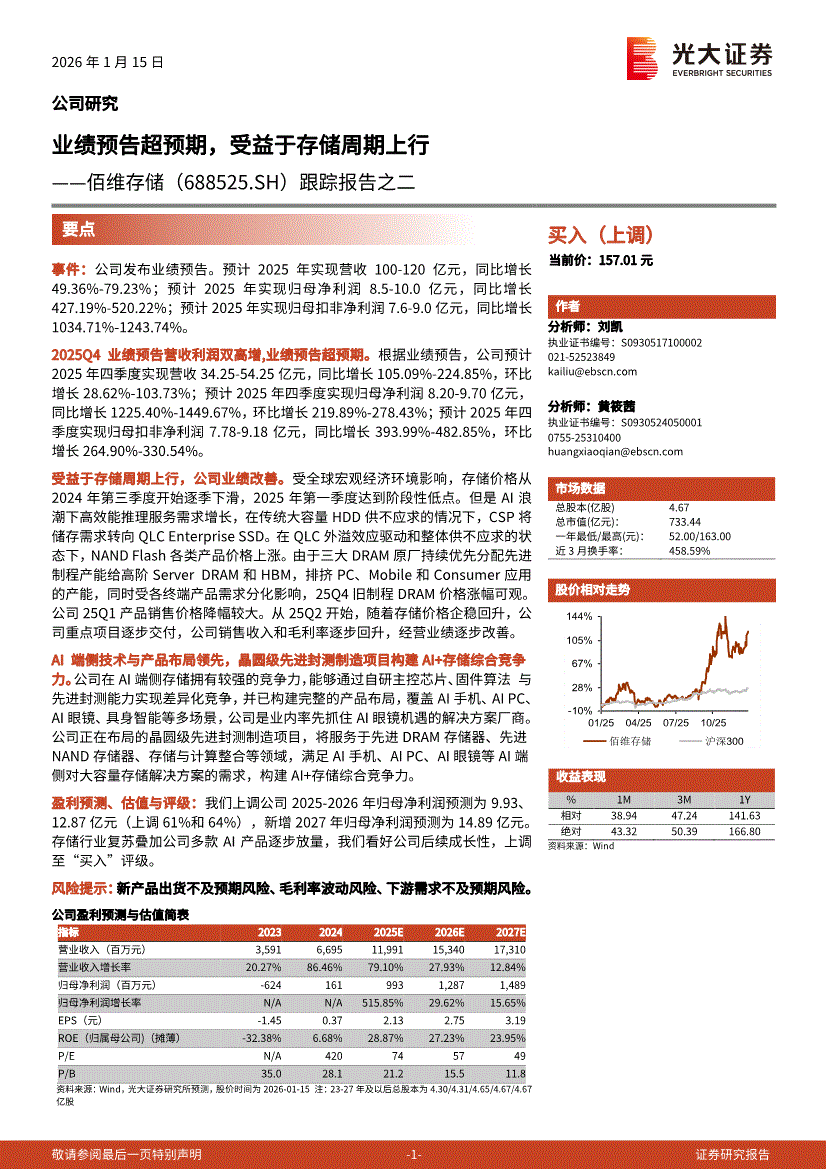 佰维存储:光大证券-佰维存储-688525-跟踪报告之二:业绩预告超预期,受益于存储周期上行-260115
