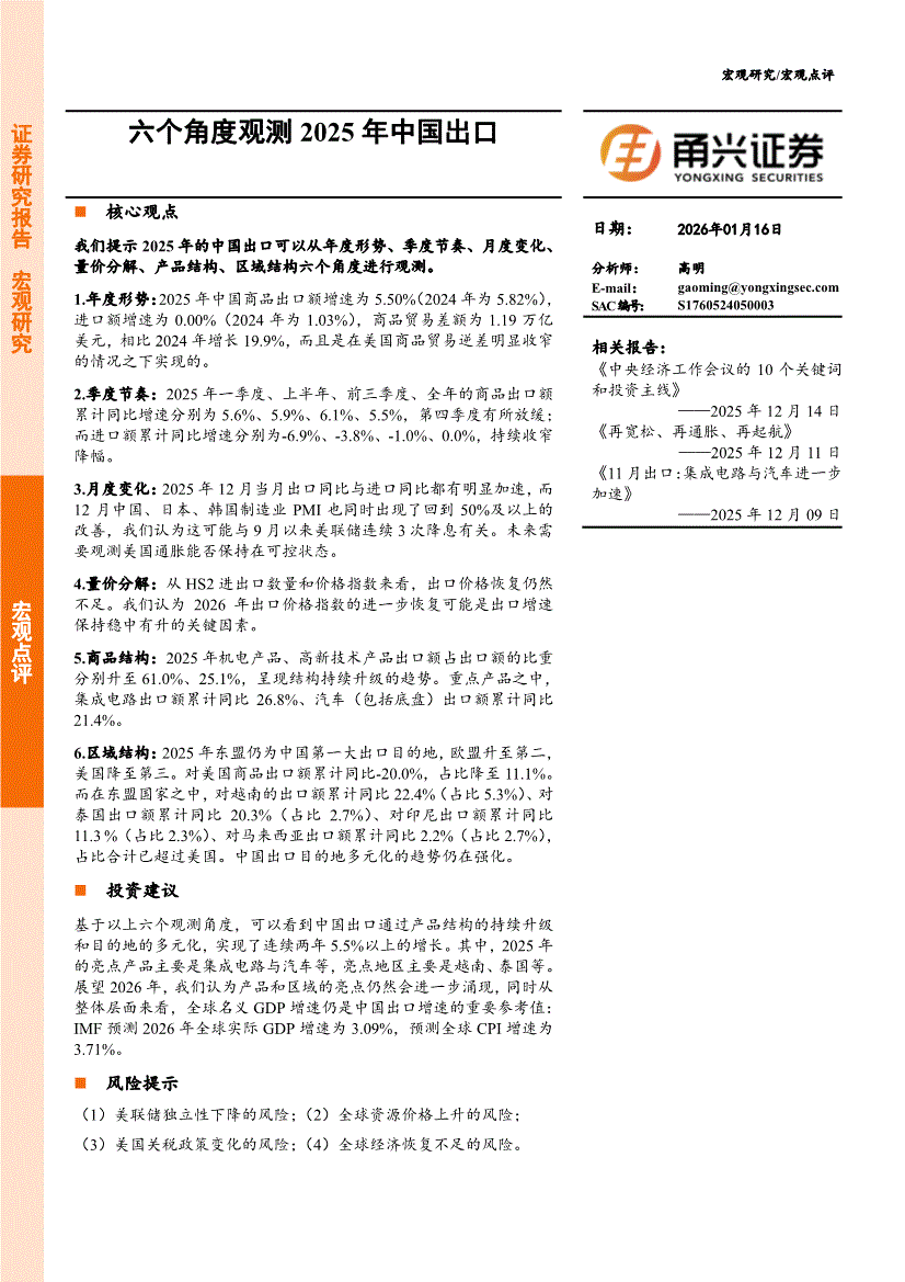甬兴证券-宏观点评:六个角度观测2025年中国出口-260116