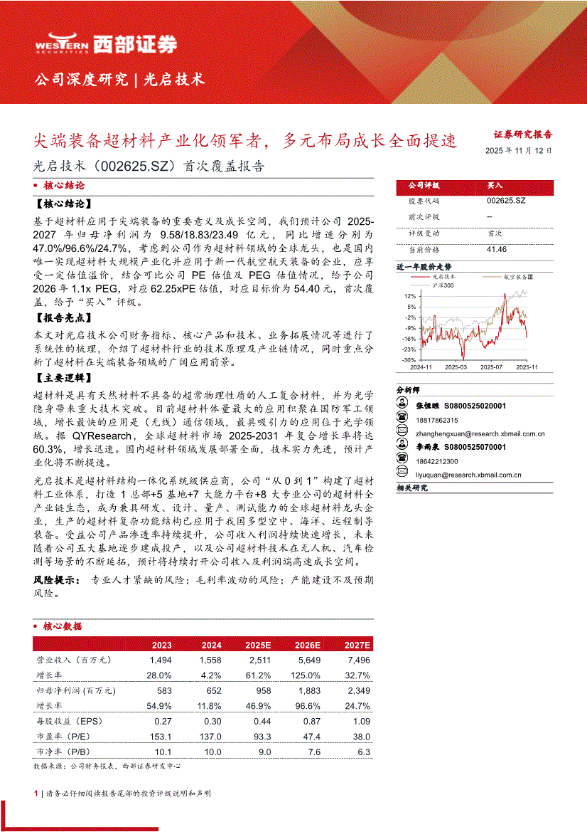 西部证券-光启技术-002625-首次覆盖报告:尖端装备超材料产业化领军者,多元布局成长全面提速-251112