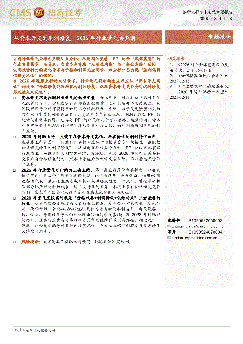 招商证券-从资本开支到利润修复:2026年行业景气再判断-260312