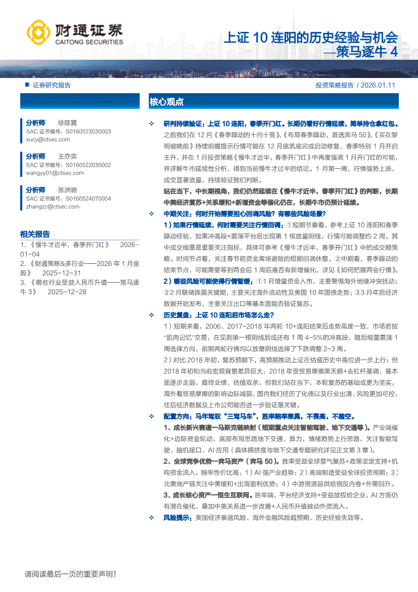 财通证券-策马逐牛4:上证10连阳的历史经验与机会-260111