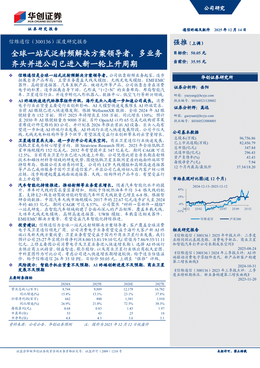 信维通信:华创证券-信维通信-300136-深度研究报告:全球一站式泛射频解决方案领导者,多业务齐头并进公司已进入新一轮上升周期-251214