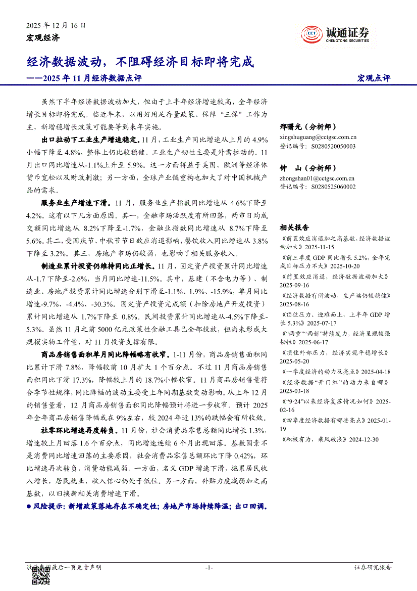 诚通证券-2025年11月经济数据点评:经济数据波动,不阻碍经济目标即将完成-251216