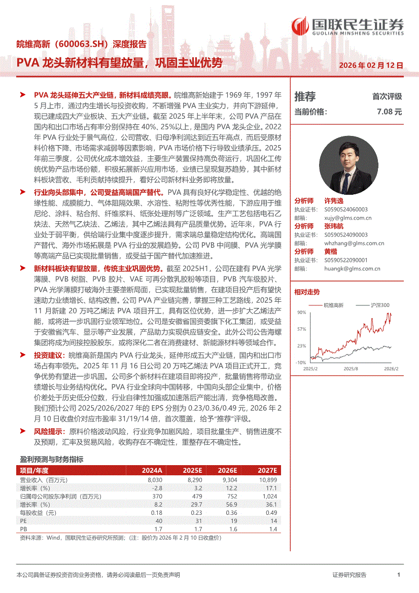 皖维高新:国联民生证券-皖维高新-600063-深度报告:PVA龙头新材料有望放量,巩固主业优势-260212