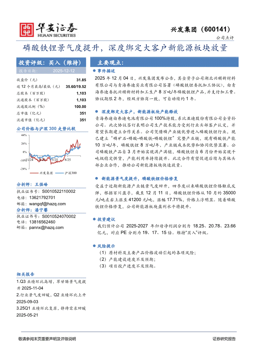 兴发集团:华安证券-兴发集团-600141-酸铁锂景气度提升,深度绑定大客户新能源板块放量-251212
