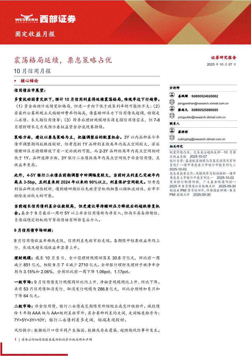 西部证券-10月信用月报:震荡格局延续,票息策略占优-251007