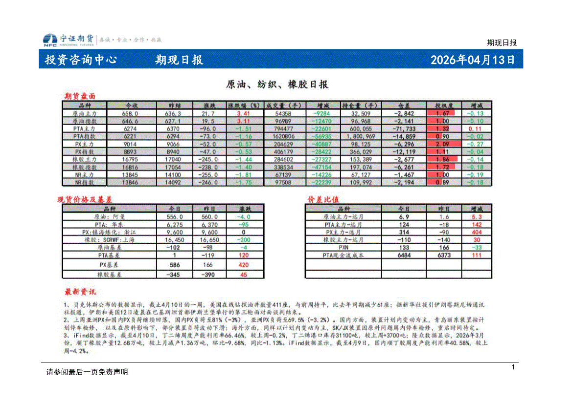 宁证期货-期现日报-260413