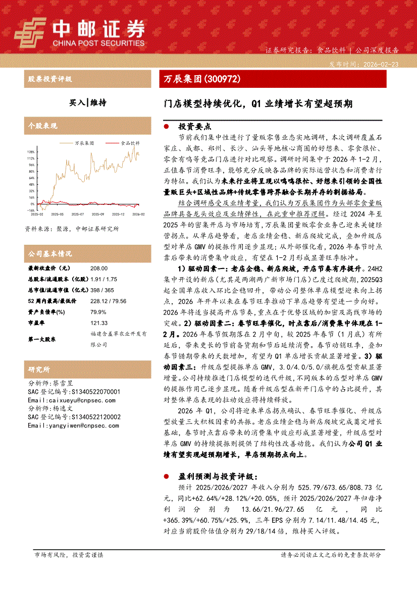 万辰集团:中邮证券-万辰集团-300972-门店模型持续优化,Q1业绩增长有望超预期-260223