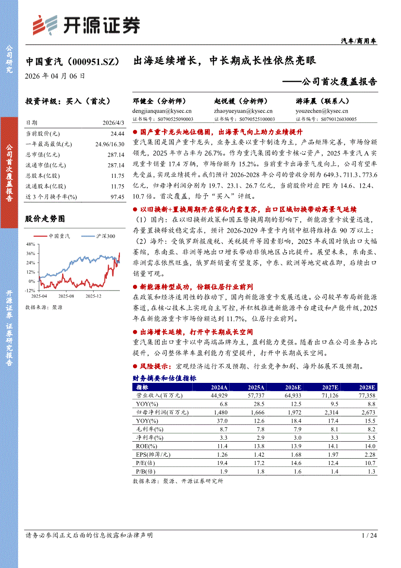 中国重汽:开源证券-中国重汽-000951-公司首次覆盖报告:出海延续增长,中长期成长性依然亮眼-260406