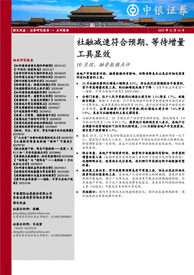 中银国际-10月投、融资数据点评:社融减速符合预期、等待增量工具显效-251116