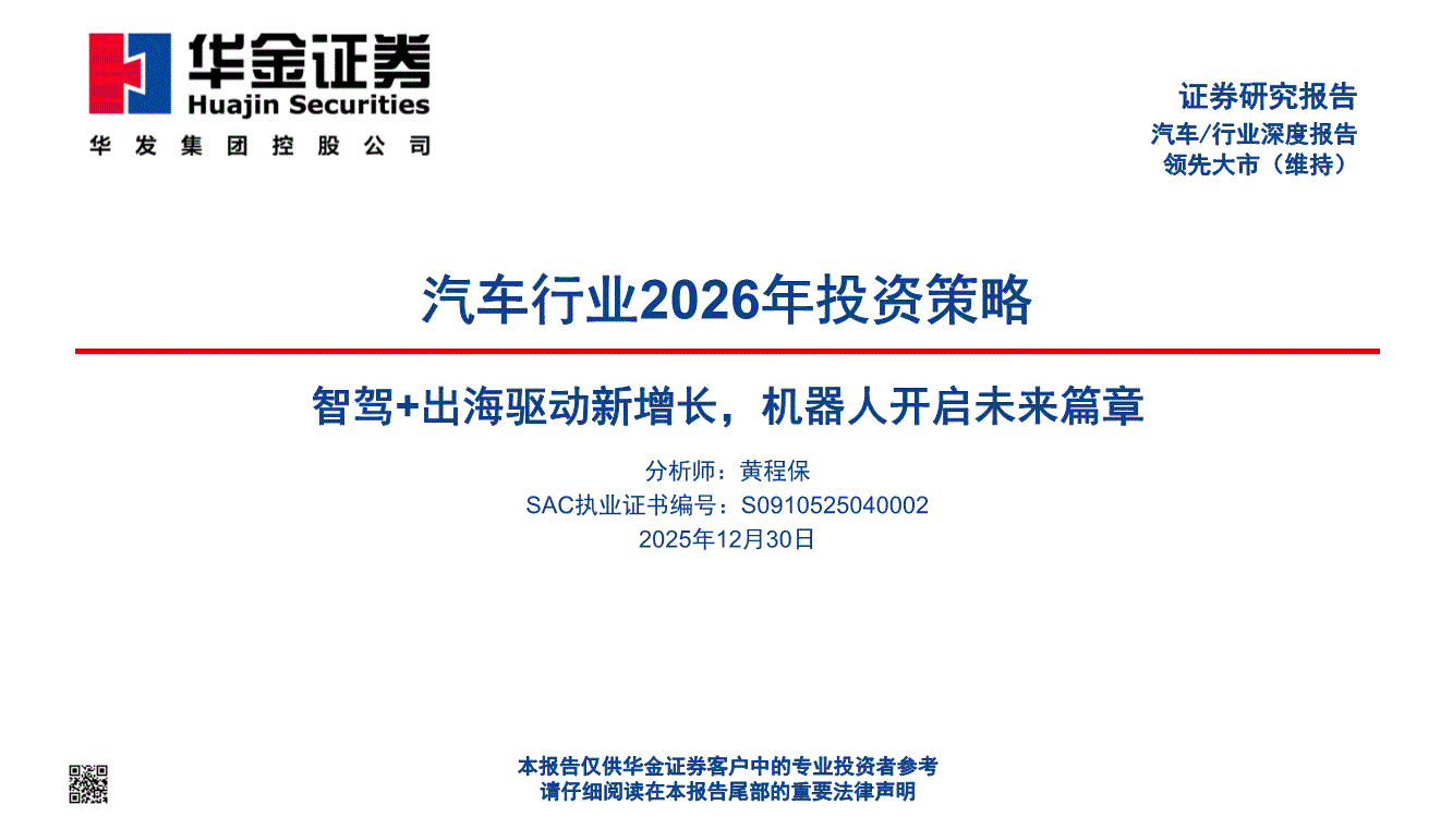 汽车行业:华金证券-汽车行业2026年投资策略:智驾+出海驱动新增长,机器人开启未来篇章-251230