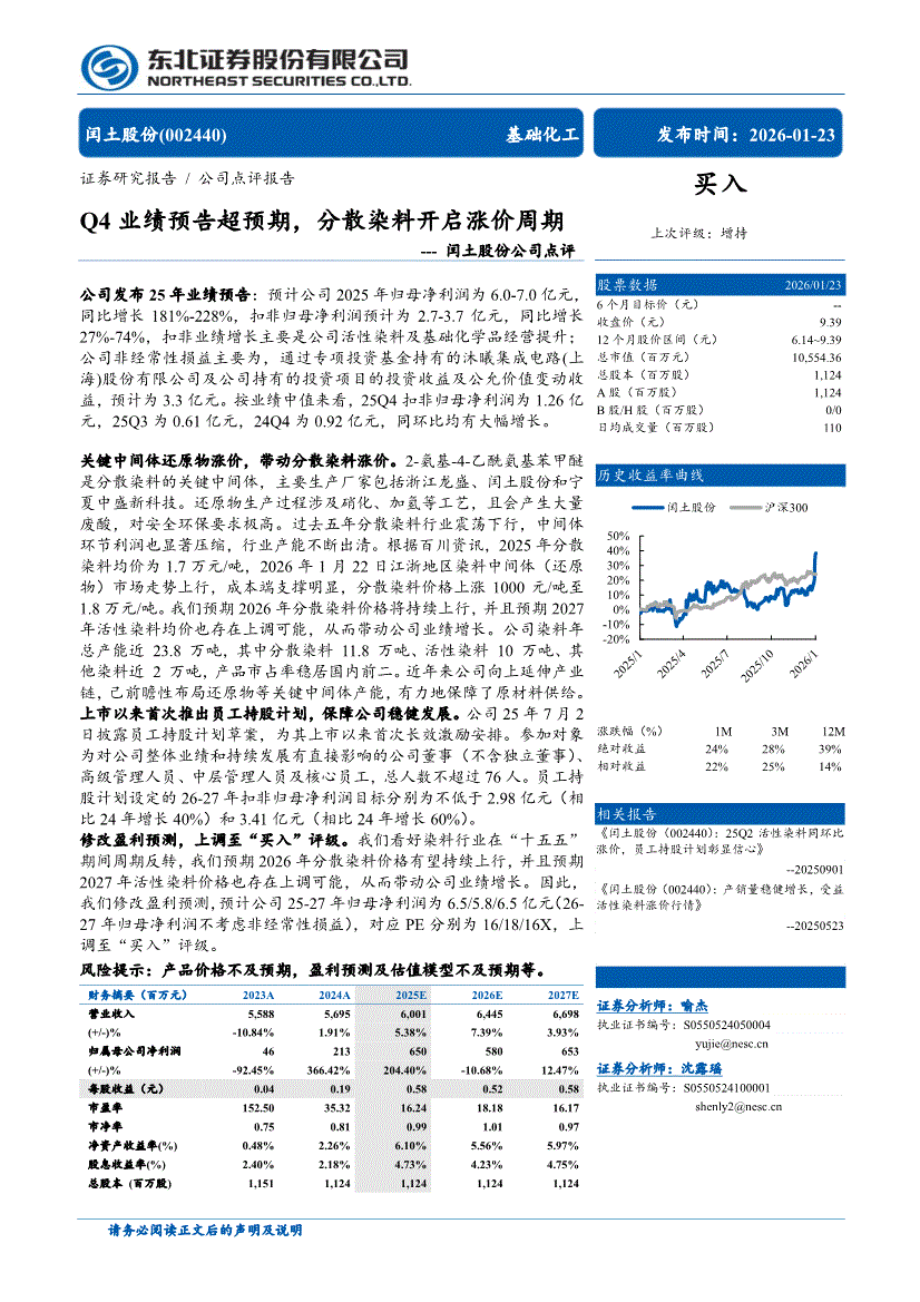 闰土股份:东北证券-闰土股份-002440-公司点评:Q4业绩预告超预期,分散染料开启涨价周期-260123