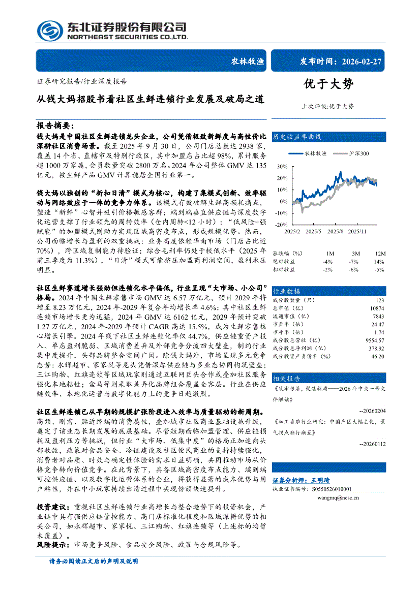 农林牧渔行业:东北证券-农林牧渔行业深度报告:从钱大妈招股书看社区生鲜连锁行业发展及破局之道-260227