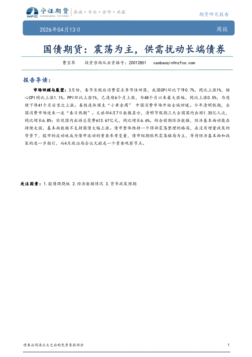 宁证期货-国债期货周报:震荡为主,供需扰动长端债券-260413