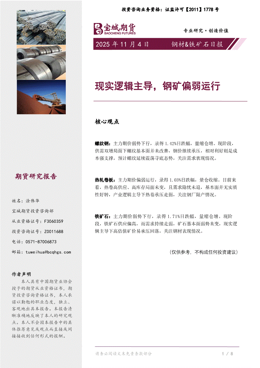 宝城期货-钢材&铁矿石日报:现实逻辑主导,钢矿偏弱运行-251104