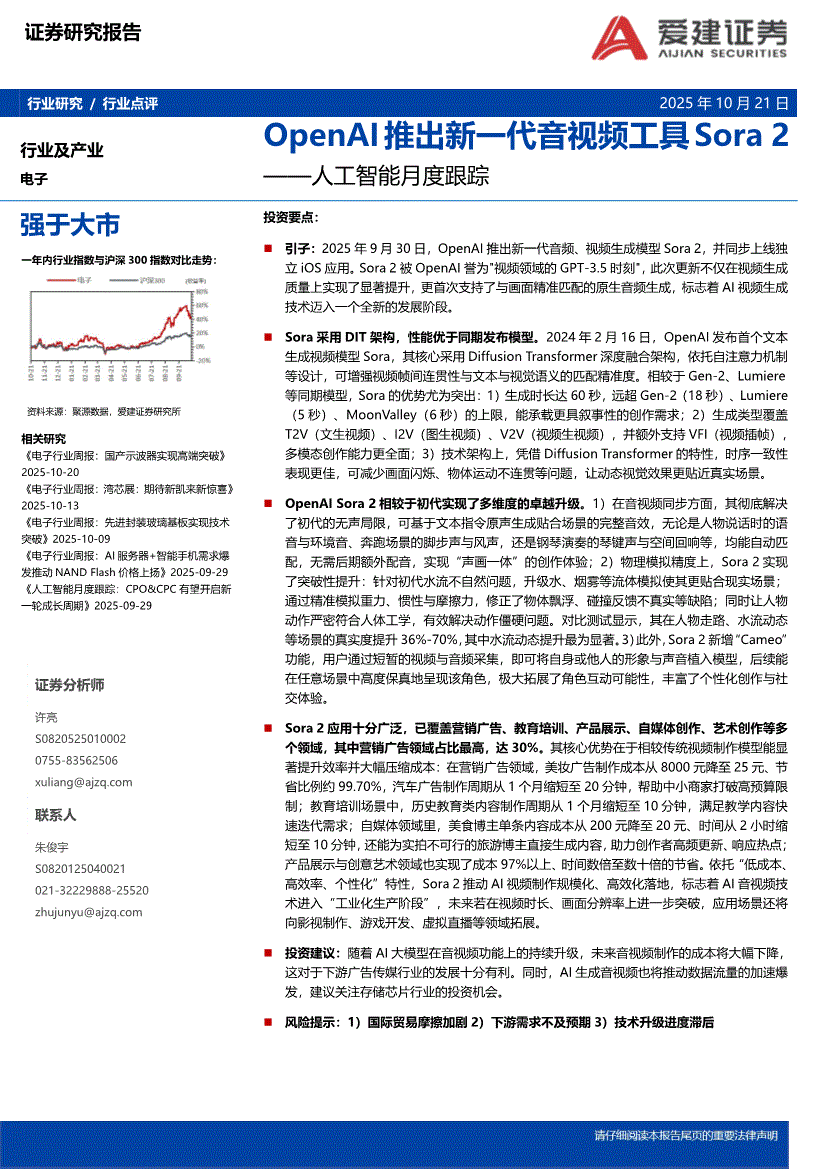 人工智能行业:爱建证券-人工智能行业月度跟踪:OpenAI推出新一代音视频工具Sora 2-251021