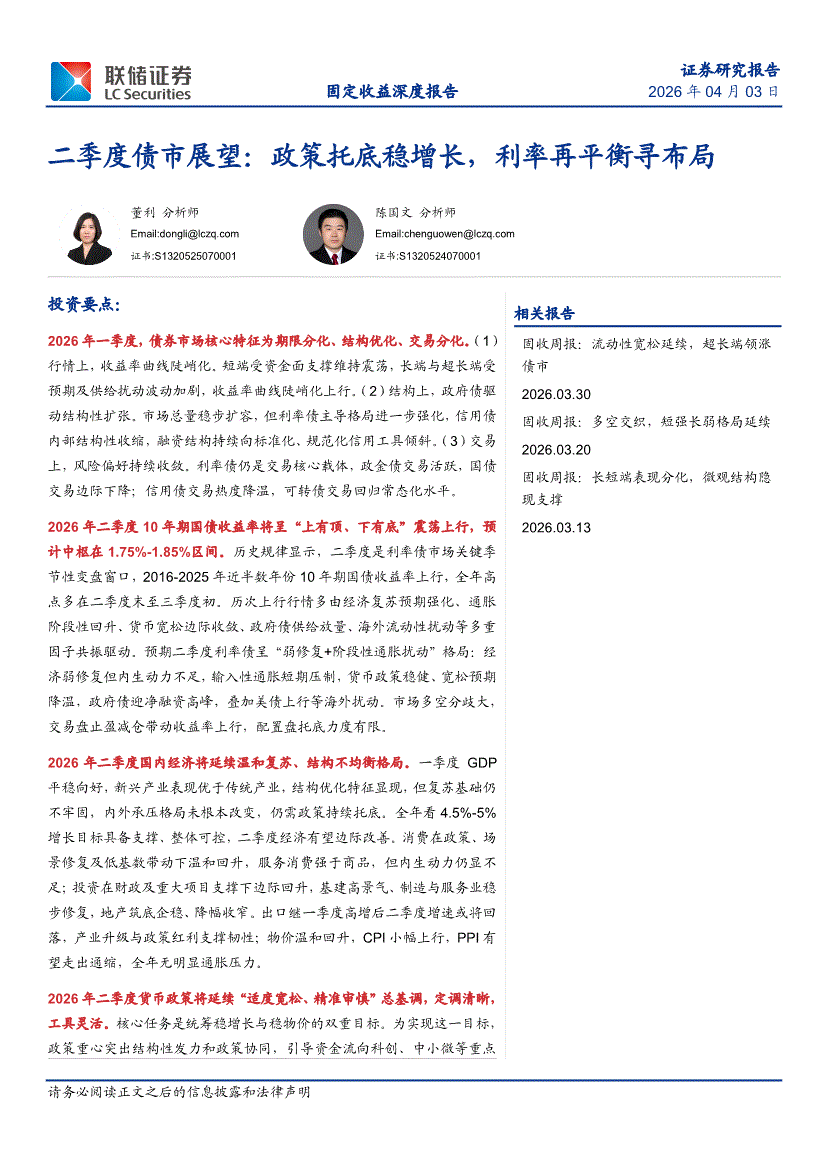 联储证券-二季度债市展望:政策托底稳增长,利率再平衡寻布局-260403