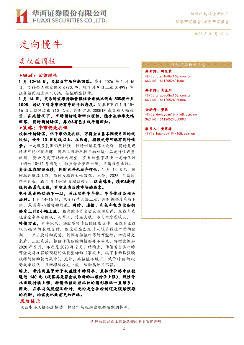 华西证券-类权益周报:走向慢牛-260118