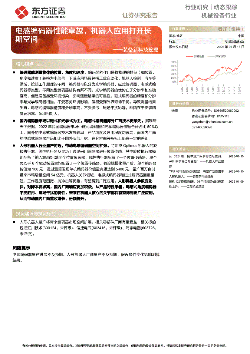 机械设备行业:东方证券-机械设备行业装备新科技挖掘:电感编码器性能卓越,机器人应用打开长期空间-260116