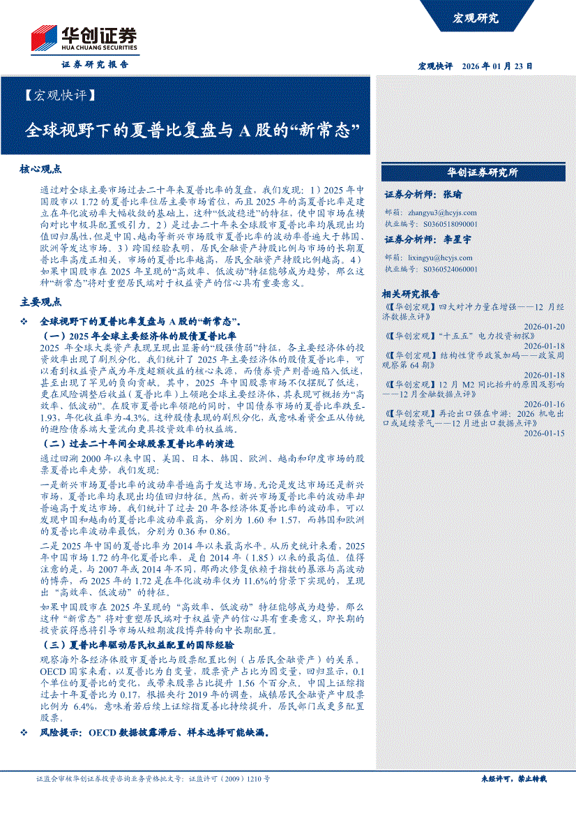 华创证券-【宏观快评】全球视野下的夏普比复盘与A股的“新常态”-260123