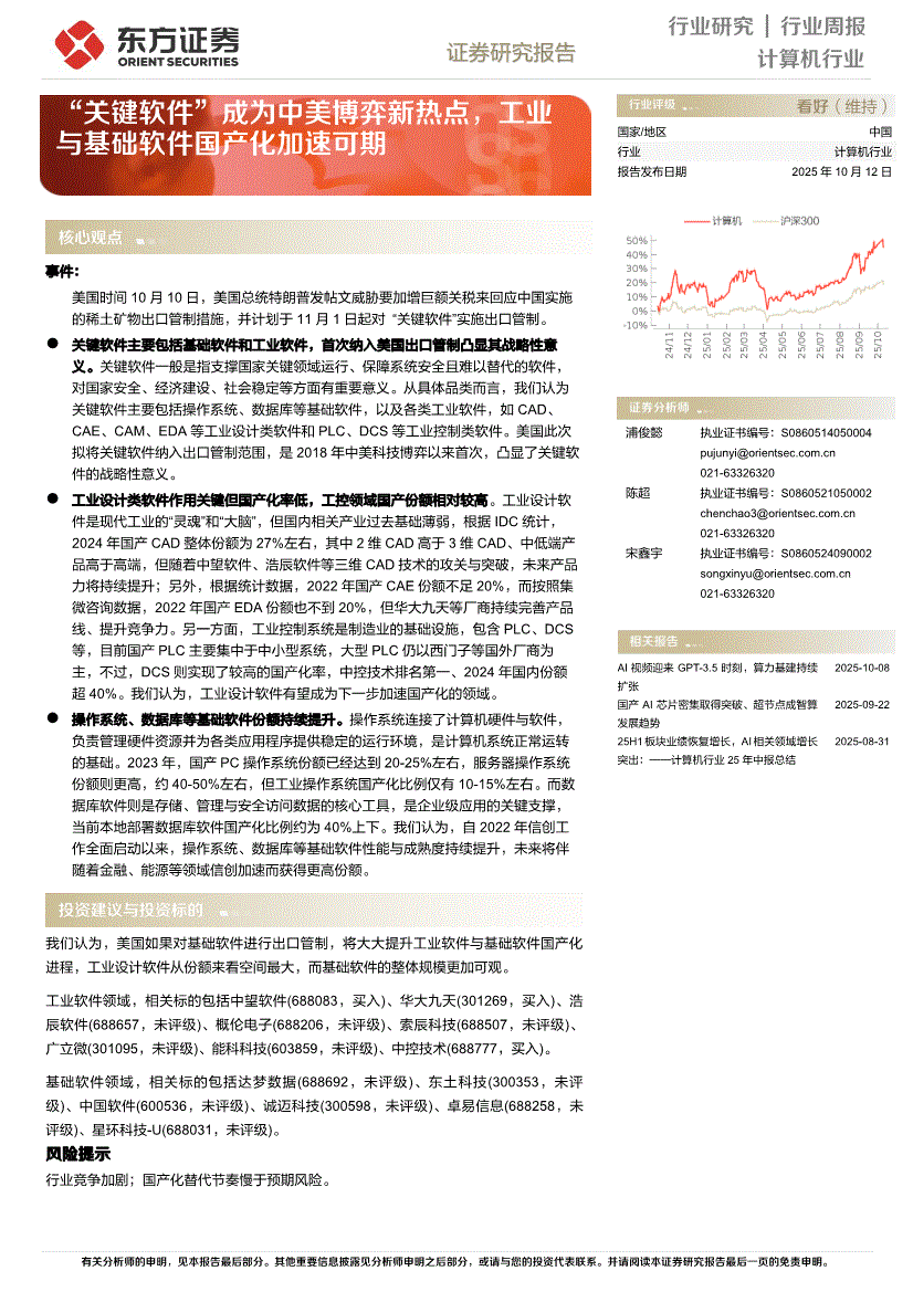 计算机行业:东方证券-计算机行业:“关键软件”成为中美博弈新热点,工业与基础软件国产化加速可期-251012