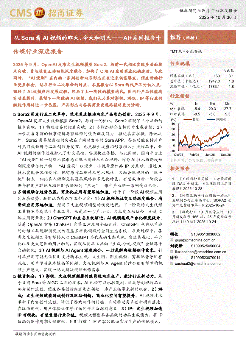 传媒行业:招商证券-传媒行业深度报告:从Sora看AI视频的昨天、今天和明天——AI+系列报告十-251030