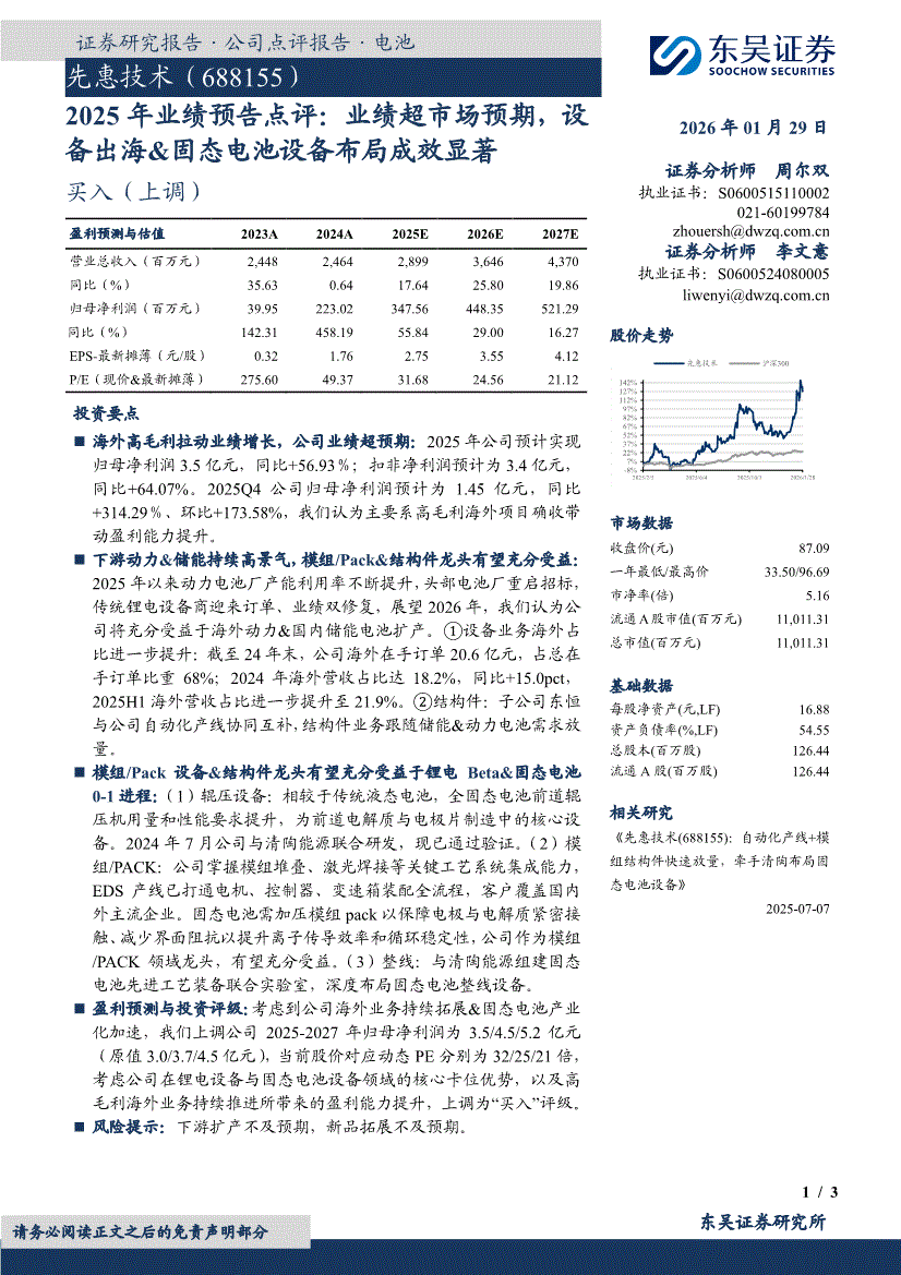 先惠技术:东吴证券-先惠技术-688155-2025年业绩预告点评:业绩超市场预期,设备出海&固态电池设备布局成效显著-260129