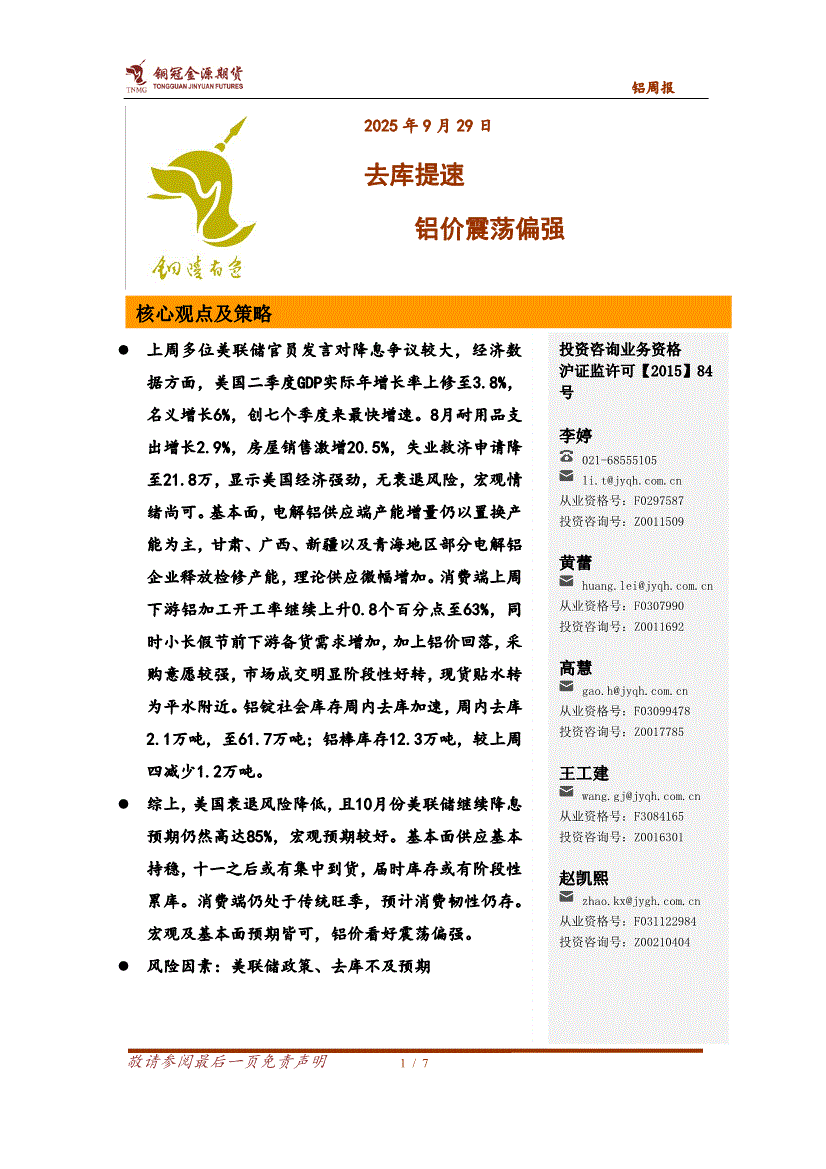 铜冠金源期货-铝周报:去库提速,铝价震荡偏强-250929