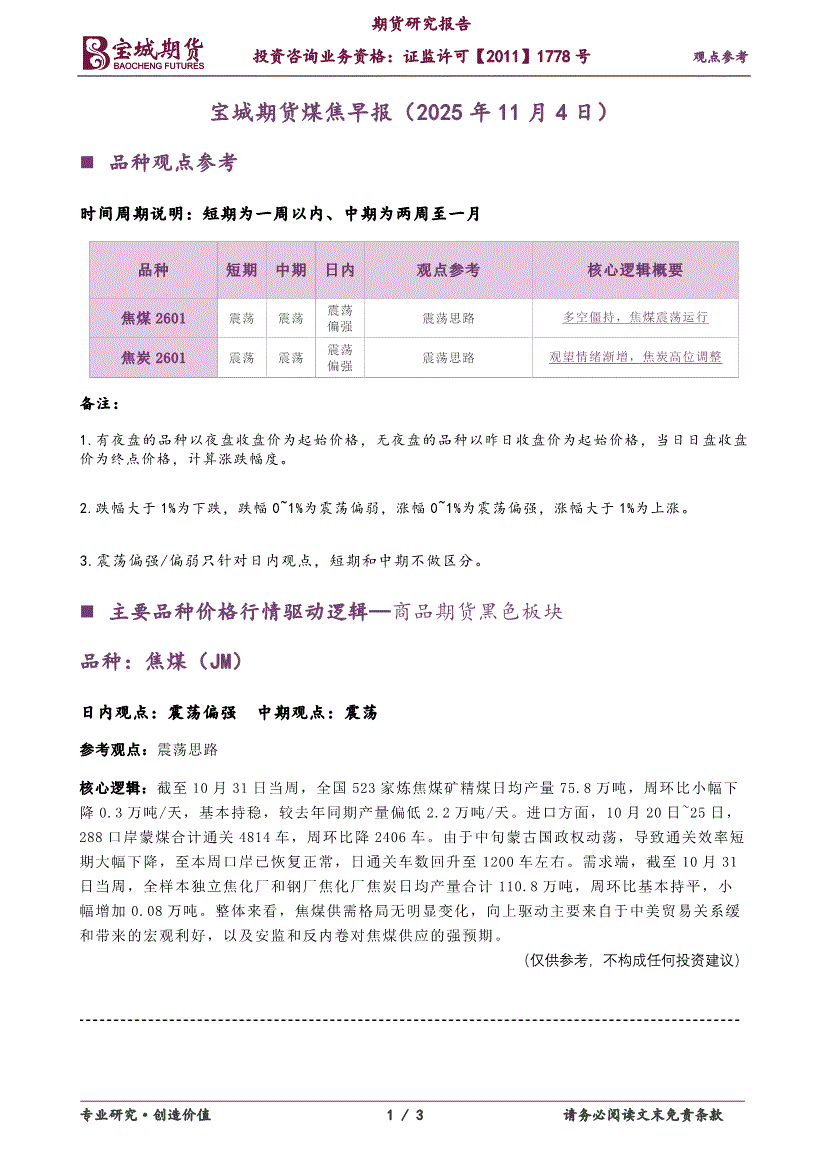 宝城期货-焦煤焦炭周报:强预期支撑,煤焦偏强震荡-251103