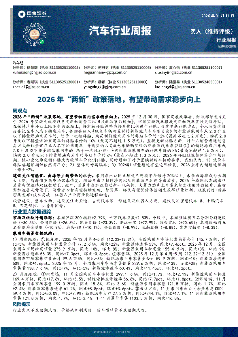 汽车行业:国金证券-汽车行业周报:2026年“两新”政策落地,有望带动需求稳步向上-260111